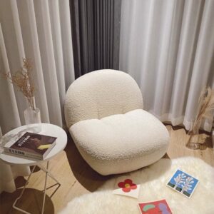 이 1인용 소파는 부클 소재로, 양털을 연상시키는 귀여운 모양이라 요즘 인테리어로 많이 선호하는 추세입니다.
